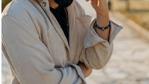ベージュのマイクロコーデュロイシャツは、どんなスーツにも合わせやすく、クラシックで落ち着いた印象を与えます。特にグレーやネイビーのスーツと組み合わせることで、洗練されたビジネススタイルを演出できます。また、タイやアクセサリーを控えめにすることで、よりシンプルで上品な印象になります。