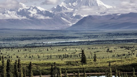 アラスカ州に位置するデナリ国立公園は、広大な自然の宝庫として知られています。アンカレッジから北へ約4時間、6百万エーカーに及ぶこの公園は、北米で最も高い山「マウント・マッキンリー」を中心に展開しています。ここでは、多様な生態系と野生動物が自由に暮らす姿を見ることができます。