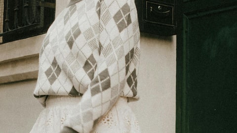 フェミニンなスカートとアーガイルタイツを合わせることで、女性らしさを引き立てることができます。フレアスカートやプリーツスカートとの相性も良く、暖かさとスタイルを両立できます。トップスにはタイトフィットのセーターがおすすめです。