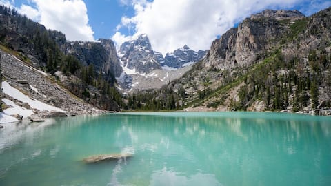 ジェニーレイクは氷河によって削られた美しい湖で、公園内でも特に人気があります。周囲にはグランドティトンやマウントオーウェンといった険しい山々がそびえ立ちます。ジェニーレイクループトレイルをハイキングすれば、水泳や釣りを楽しむことができ、「インスピレーションポイント」の絶景も堪能できます。また、ボートシャトルを利用してカスケードキャニオントレイルへアクセスし、滝や小川を探索することも可能です。