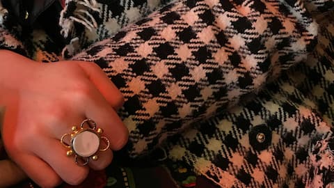 ハウンドトゥースジャケットで洗練された印象