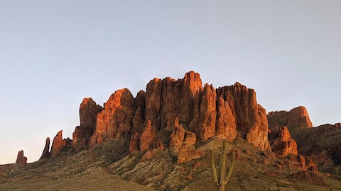 ロストダッチマン州立公園は、「失われたダッチマンの金鉱伝説」 で有名な場所のひとつです。ここからはスーペリスティションマウンテンズの絶景が広がり、特に朝夕の光に照らされる山々の色合いは写真愛好家に人気です。公園内には複数のトレイルがあり、初心者から中級者向けまでハイキングを楽しめます。