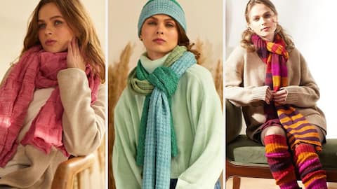 冬のエレガンス:ニュートラルニットと明るいスカーフ